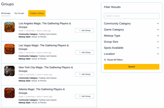 There’s no limit to the number of groups you can join. Want to find MTG groups near you that love budget brews, cube drafts, or even Pauper? Or maybe start a virtual playgroup for spell-slinging across time zones? If it fuels your passion, there’s a space for it here.